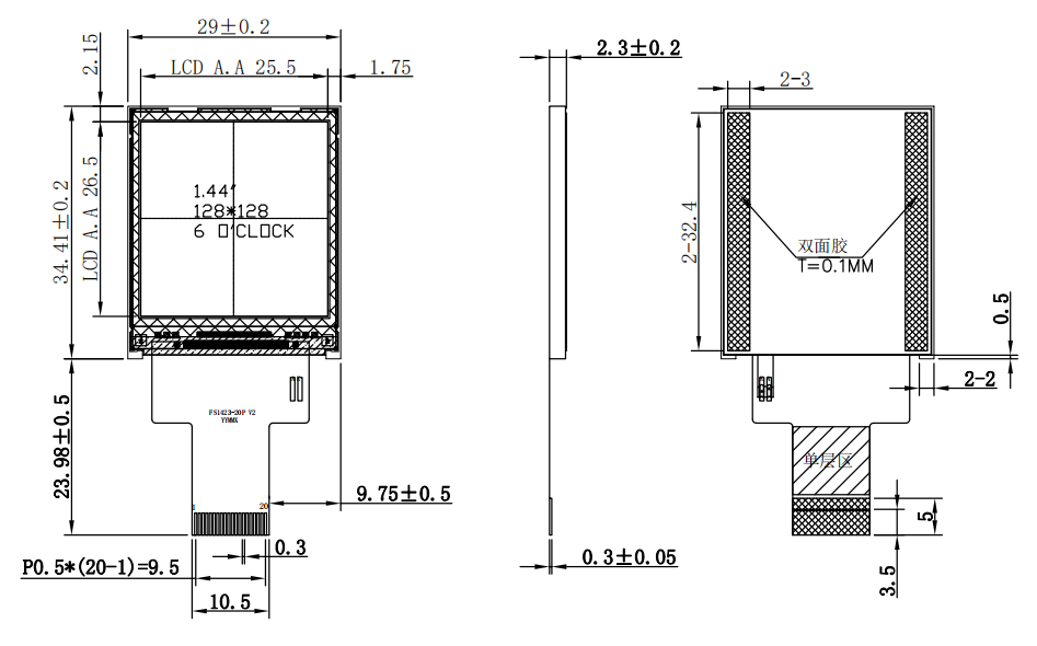 | Module Size ( W×H×T ) | 29 mm * 34.41 mm * 2.3 mm T | mm. |